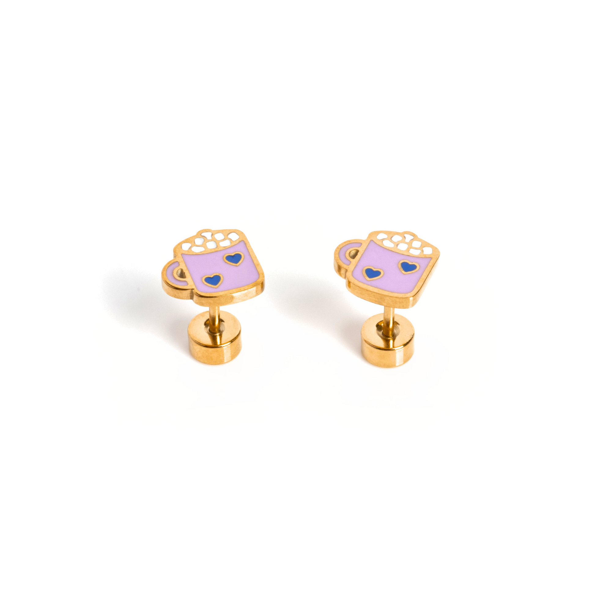 Our Hot Cocoa enamel screwback studs are about 7mm, hypoallergenic, and safe for every age, making them the sweetest accessory for chilly days and beyond.